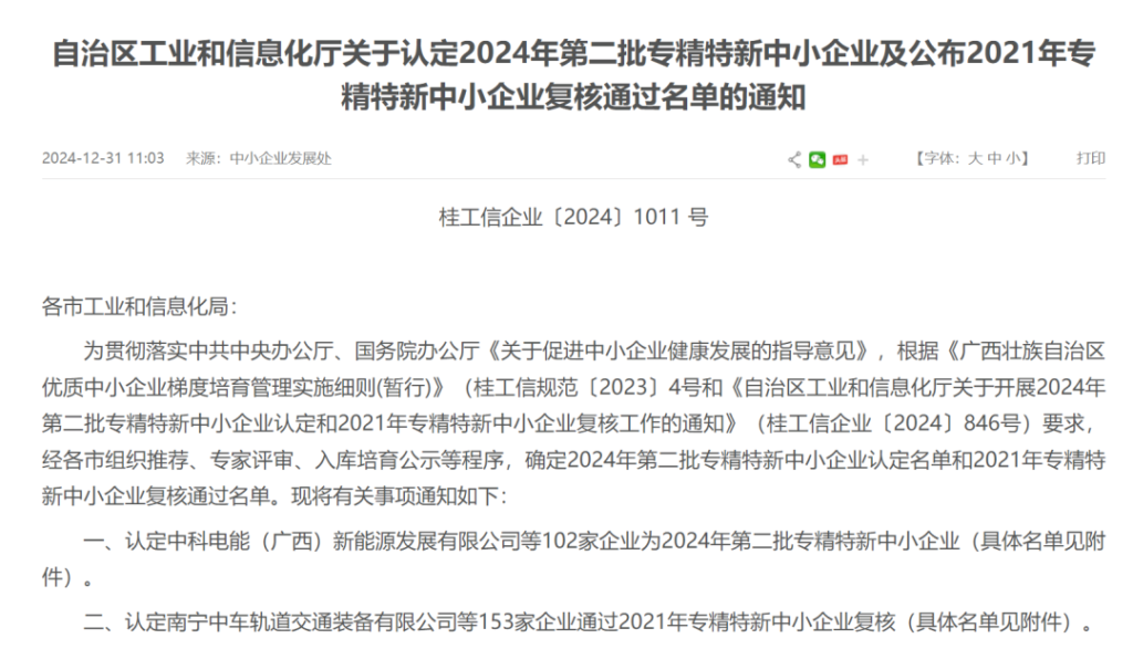自治区第二批“专精特新”中小企业公示发布,捷佳润通过“专精特新”中小企业复核。